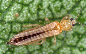“十个措施控制难以捉摸的温室蓟马”。在赤道地区,蓟马是一个主要的植物检疫挑战,并会大大阻碍观赏作物种植者在国际市场上的成功。这种害虫在成虫期和若虫期直接取食,会导致叶片变形或花瓣失绿,给种植者造成一定程度的外观损害,使作物滞销。这种害虫的多食性和携带病毒(如孢子病毒)的能力,可能对输入地区造成更大的威胁,工作人员需要不断监测温室作物中各种蓟马的种类。