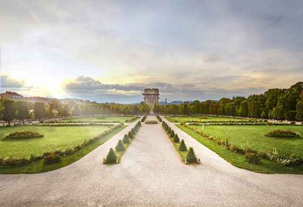 宏伟的巴洛克式花园是丽城的一颗明珠,展现了尤金王子的花园之爱。他把18世纪初创建的室内花园作为他的私人花园,道路、水池、楼梯、拱廊和展馆的多样化设计满足了私人氛围和封建代表权的愿望。